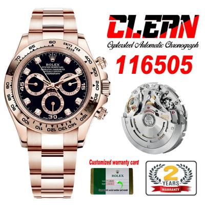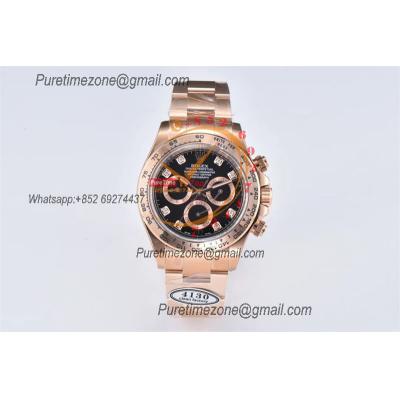 Daytona 116505 SA4130 Automatic Chronograph Mens Watch Best Edition CLEAN V3 RG Black Diamonds Dial 904L Steel Bracelet