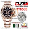 Daytona 116505 SA4130 Automatic Chronograph Mens Watch Best Edition CLEAN V3 RG Black Diamonds Dial 904L Steel Bracelet