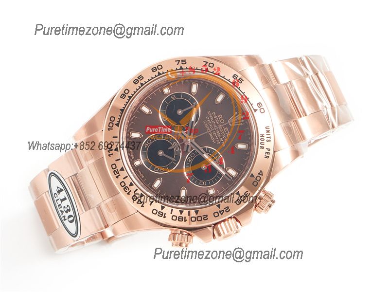 Daytona 116505 SA4130 Automatic Chronograph Mens Watch Best Edition CLEAN V3 RG Brown Dial 904L Steel Bracelet CHS