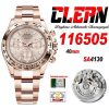 Daytona 116505 SA4130 Automatic Chronograph Mens Watch Best Edition CLEAN V3 RG Champagne Diamonds Dial 904L SS Bracele