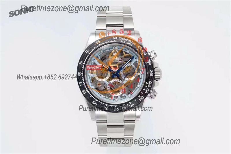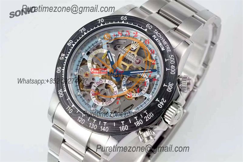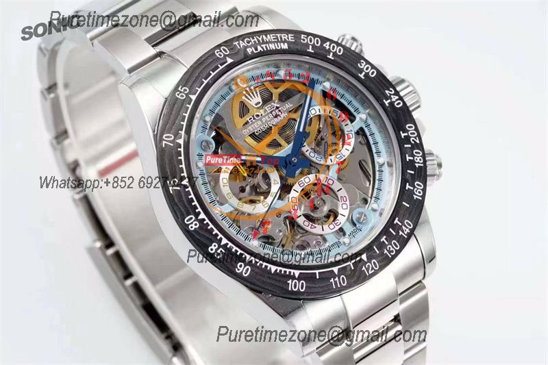 Daytona 116506 SA4130 Automatic Chrono Mens Watch Best Edition SONIC Carbon Bezel Skeleton Dial Oyster Bracelet