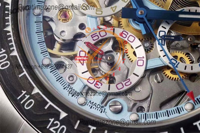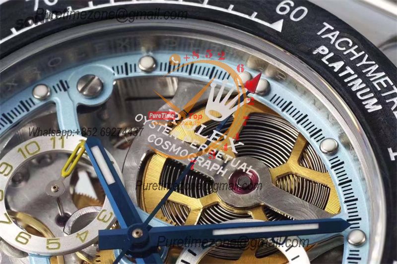 Movement:Custom made skeleton asian Super Clone4130 movement 28800vph, 1:1 replicated from the genuine movement, fully functional. Blue spring same as genuiine.