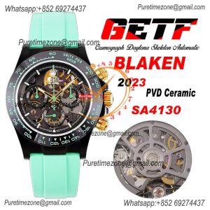 Daytona Blaken SA4130 Automatic Chronograph Mens Watch Best Edition GETF Carbon Bezel Skeleton Gold Dial Green Rubber $1,260.00 $1,050.00