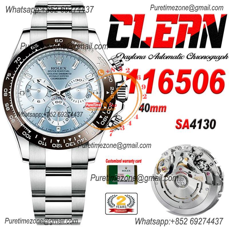 Daytona 116506 SA4130 Automatic Chronograph Mens Watch Best Edition CLEAN V3 ICE Blue Diamonds Dial 904L SS Bracelet CHS