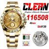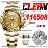 Daytona 116508 SA4130 Automatic Chronograph Mens Watch Best Edition CLEAN V3 YG Champagne Dial 904L SS Bracelet CHS