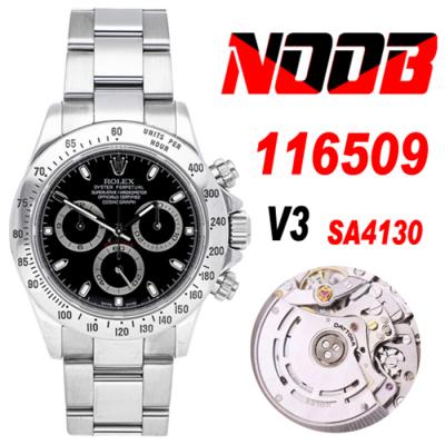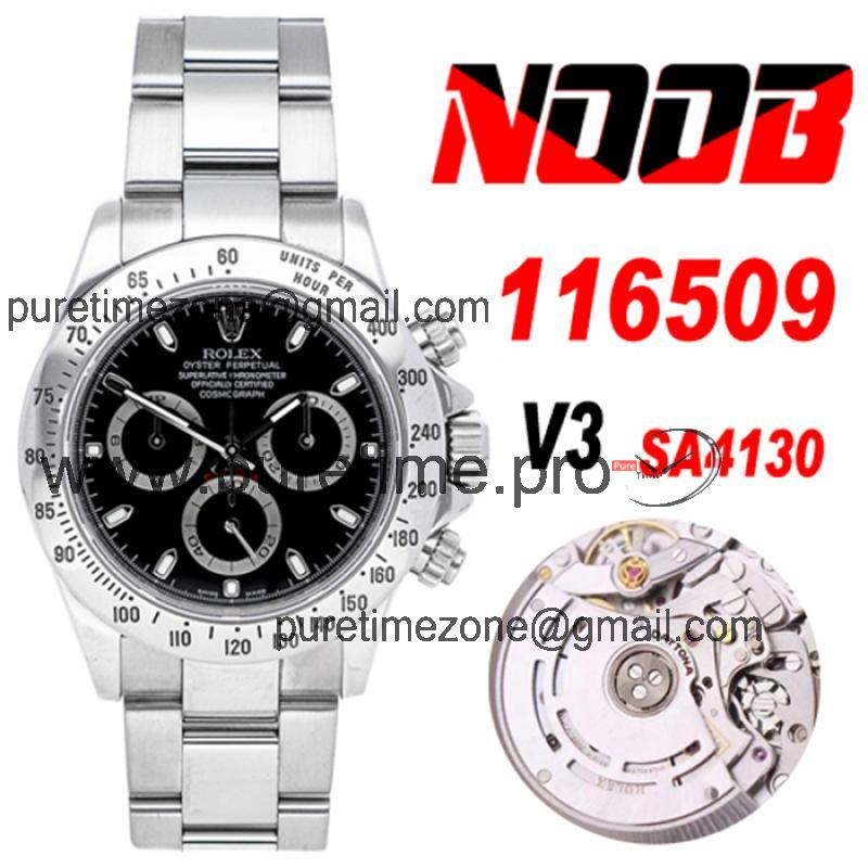 Daytona 116508 SA4130 Automatic Chronograph Mens Watch Best Edition NOOB V3 Black Dial 904L SS Bracelet CHS