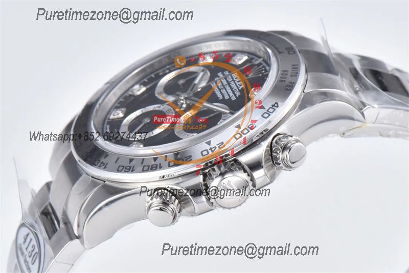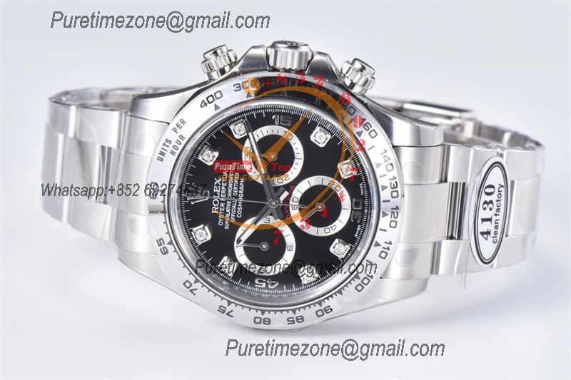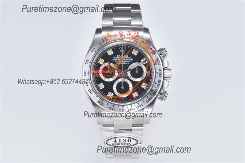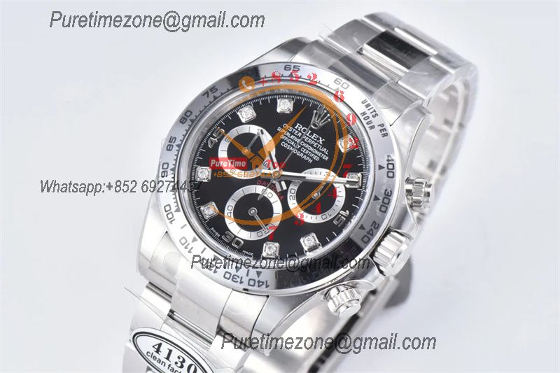 Daytona 116509 SA4130 Automatic Chronograph Mens Watch Best Edition CLEAN V3 Black Diamond Dial 904L SS Bracelet CHS