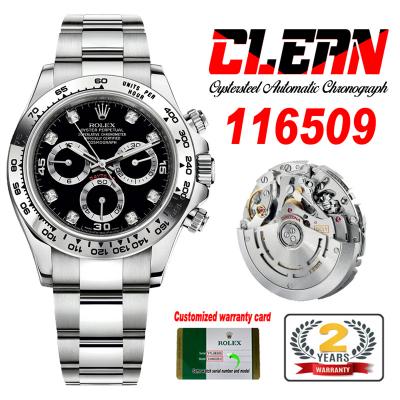 Daytona 116509 SA4130 Automatic Chronograph Mens Watch Best Edition CLEAN V3 Black Diamond Dial 904L SS Bracelet CHS