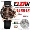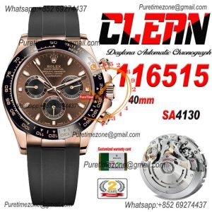 Daytona 116515 SA4130 Automatic Chronograph Mens Watch Best Edition CLEAN V3 RG Brown Dial Black Oysterflex Rubber CHS