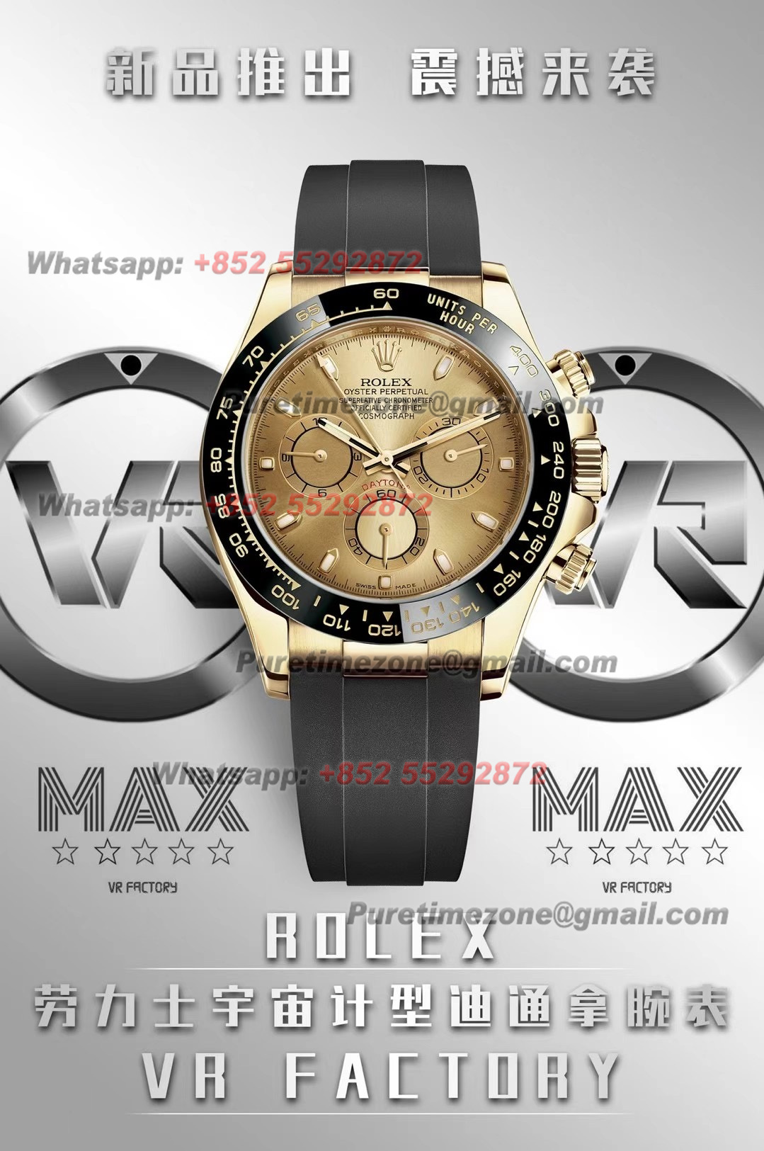 Daytona 116518 Automatic Chronograph Mens Watch Best Edition VRF YG Champagne Black Dial Oysterflex Rubber Strap A7750 CHS $700.00 $560.00