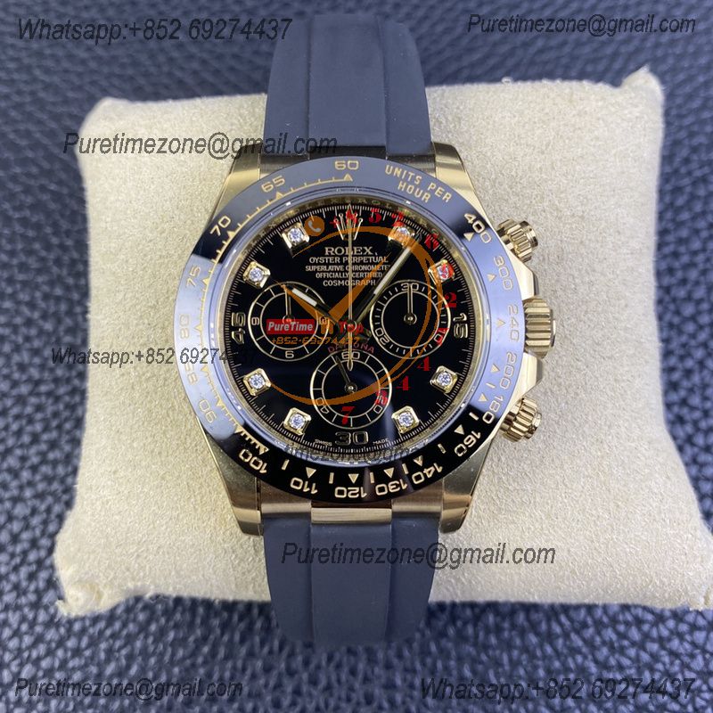Daytona 116518 SA4130 Automatic Chronograph Mens Watch Best Edition CLEAN V3 YG Black Diamonds Dial Oysterflex Rubber