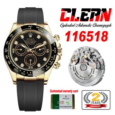 Daytona 116518 SA4130 Automatic Chronograph Mens Watch Best Edition CLEAN V3 YG Black Diamonds Dial Oysterflex Rubber