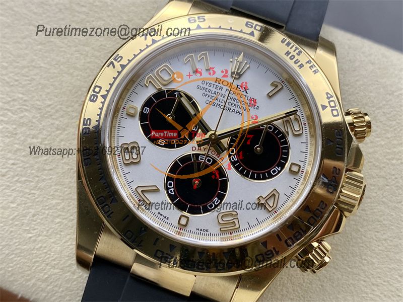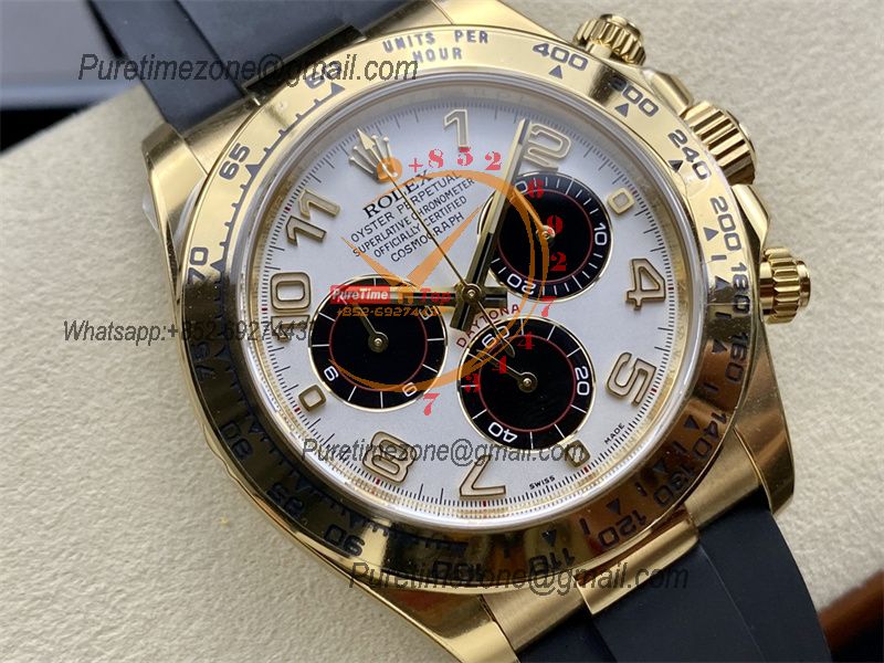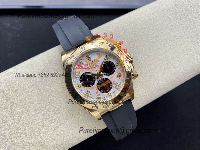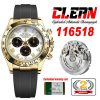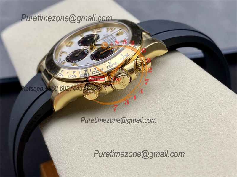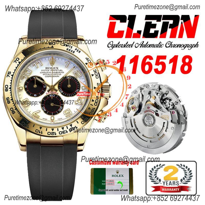 Daytona 116518 SA4130 Automatic Chronograph Mens Watch Best Edition CLEAN V3 YG White Dial Black Oysterflex Rubber CHS