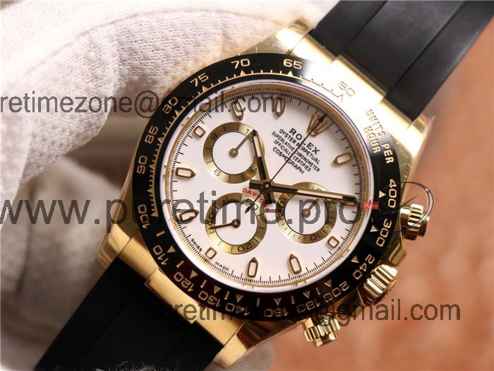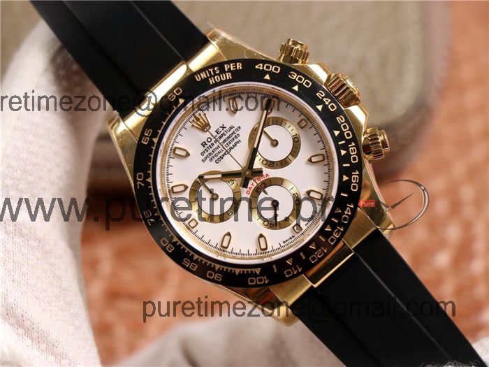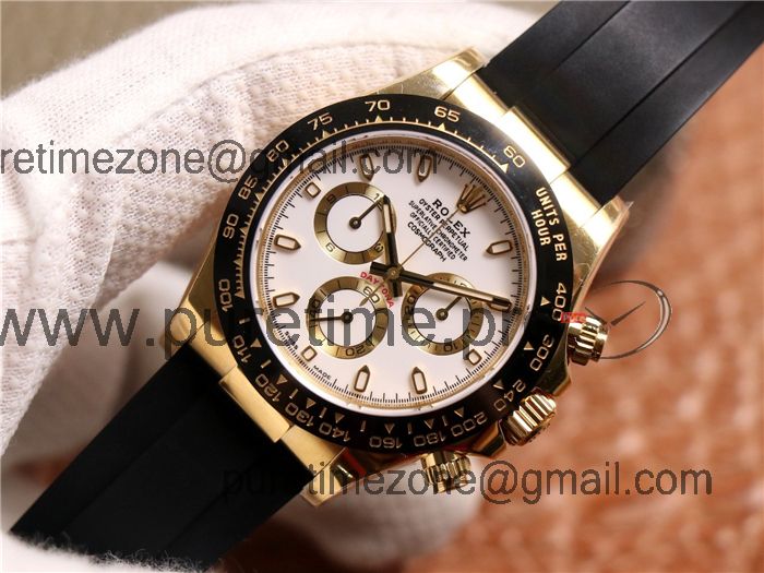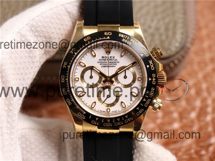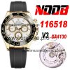Daytona 116518 SA4130 Automatic Chronograph Mens Watch Best Edition NOOB V3 YG White Dial Oysterflex Rubber CHS