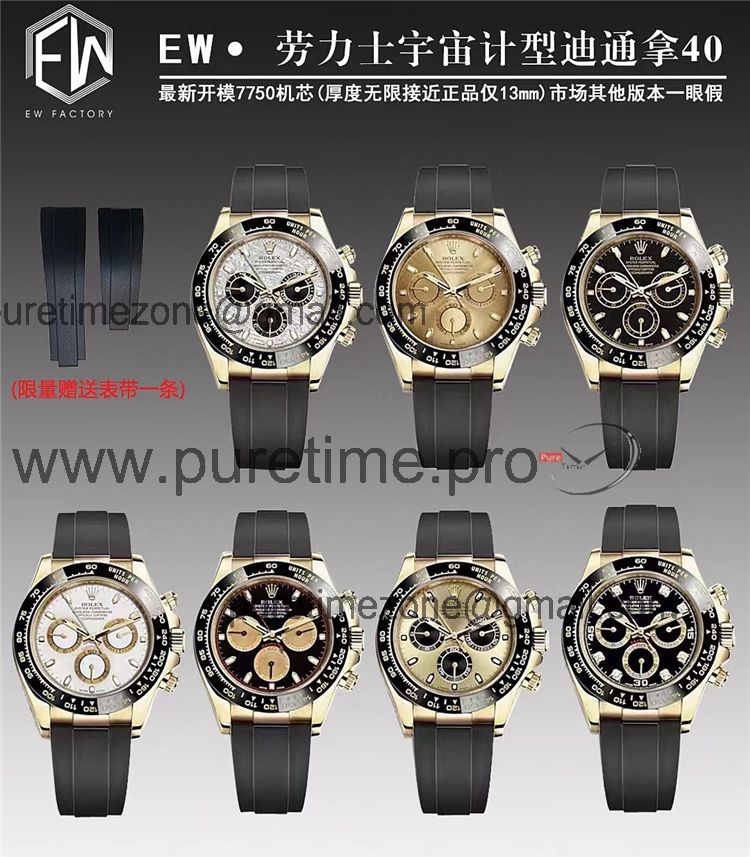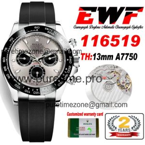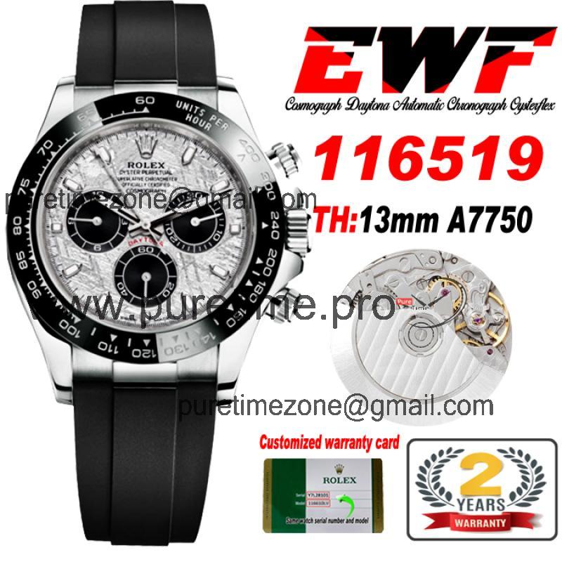 Daytona 116519 A7750 Automatic Mens Watch Best Edition EWF 904L Steel Meteorite Black Dial Oysterflex Rubber CHS