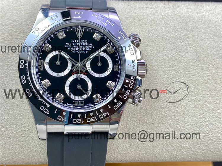 Daytona 116519 SA4130 Automatic Chronograph Mens Watch Best Edtiion BTF Black Diamonds Dial Oysterflex Rubber CHS