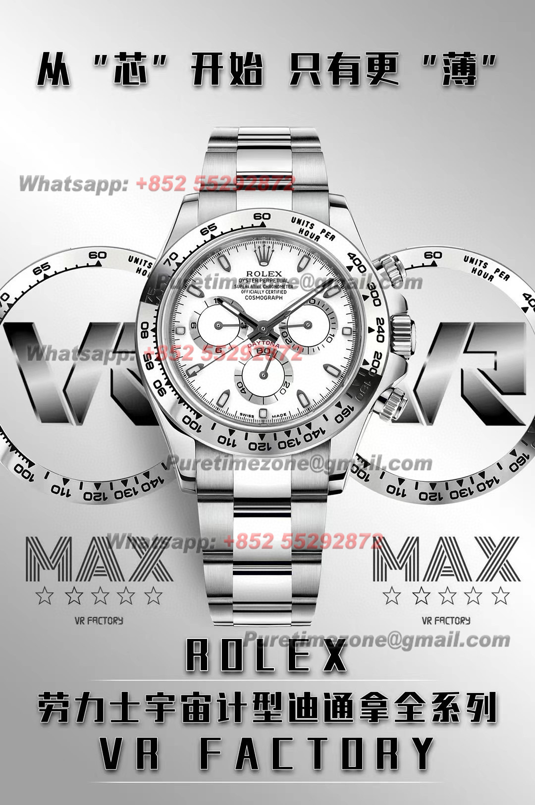 Daytona 116520 Automatic Chronograph Mens Watch Best Edition VRF White Dial 904L SS Bracelet A7750 CHS