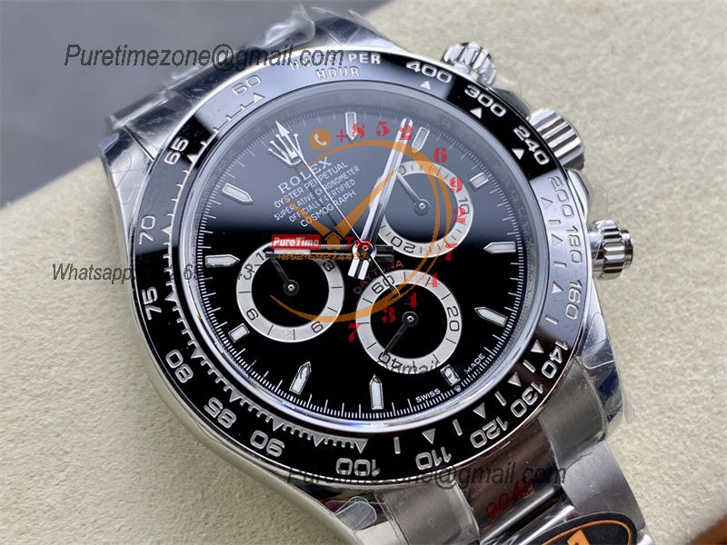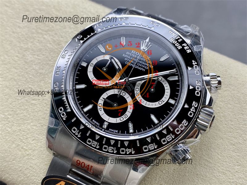 Bezel:Black ceramic tachymeter bezel with steel wrapped