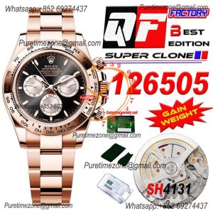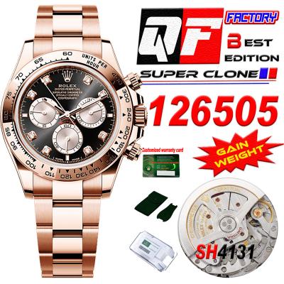 Daytona 126505 SH4131 Automatic Chronograph Mens Watch Best Edition QF V6 RG Black Dial 904L SS Bracelet (Gain Weight)