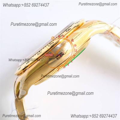 Case:18k yellow gold plated 1:1 replicated solid 904L stainless steel case, Cu-W metal to increase watch weight to match the genuine gold watch weight, almost same weight as genuine watch