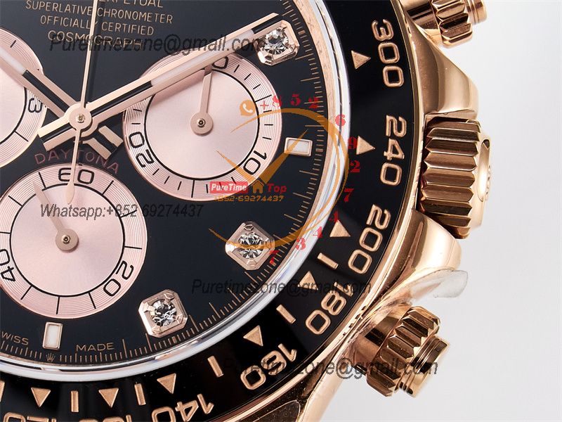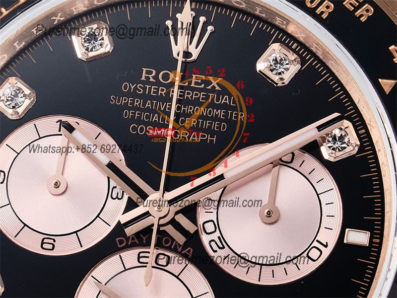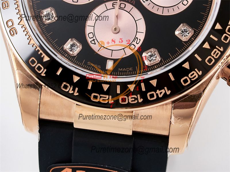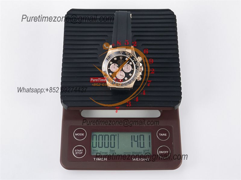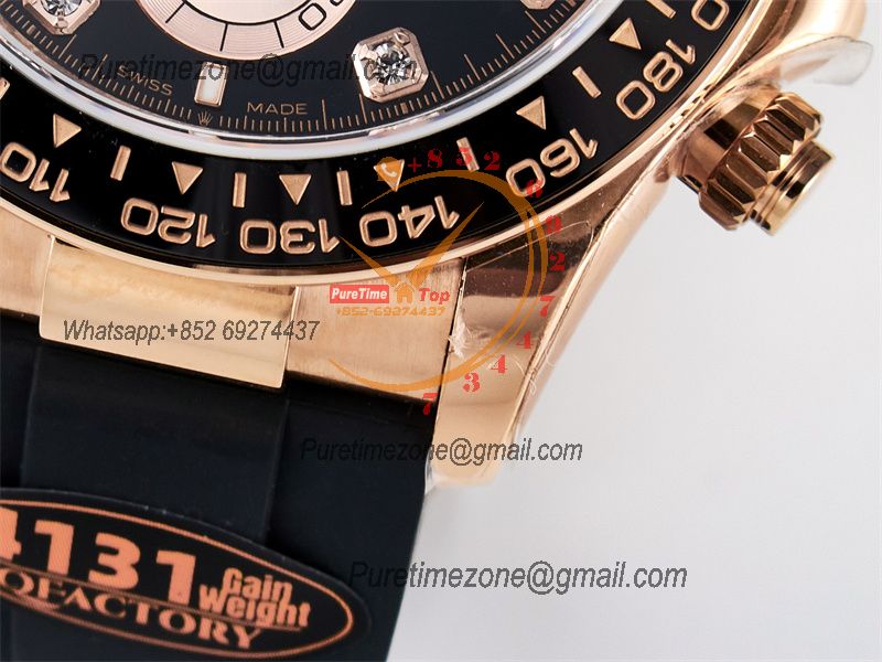 Case:18K rose gold plated1:1 replicated solid 904L stainless steel case, Cu-W metal to increase watch weight to match the genuine gold watch weight, the whole watch weight is about 140g