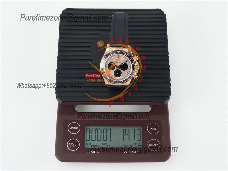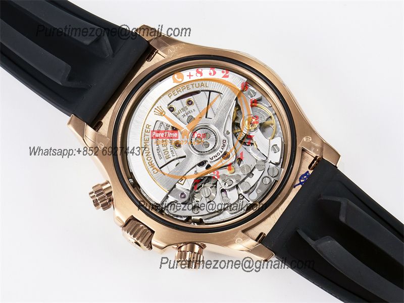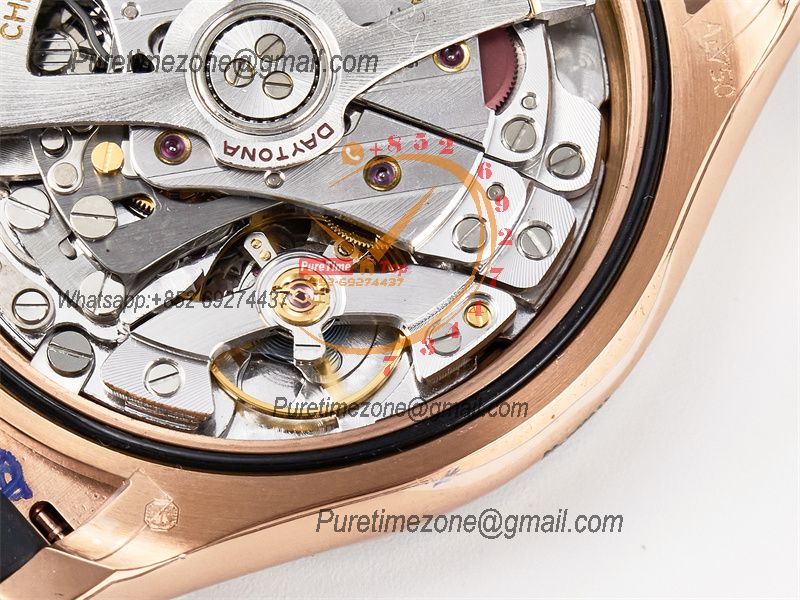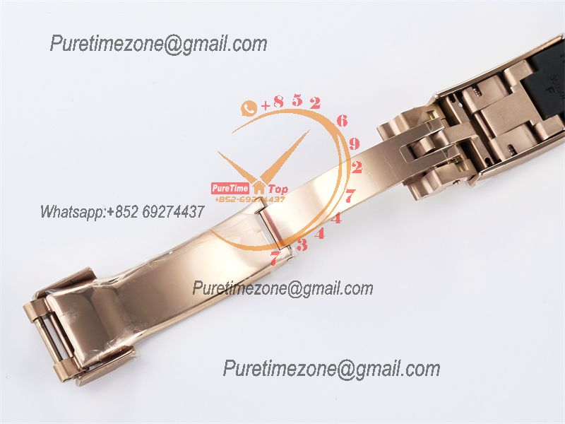 Case:18K rose gold plated1:1 replicated solid 904L stainless steel case, Cu-W metal to increase watch weight to match the genuine gold watch weight, the whole watch weight is about 140g