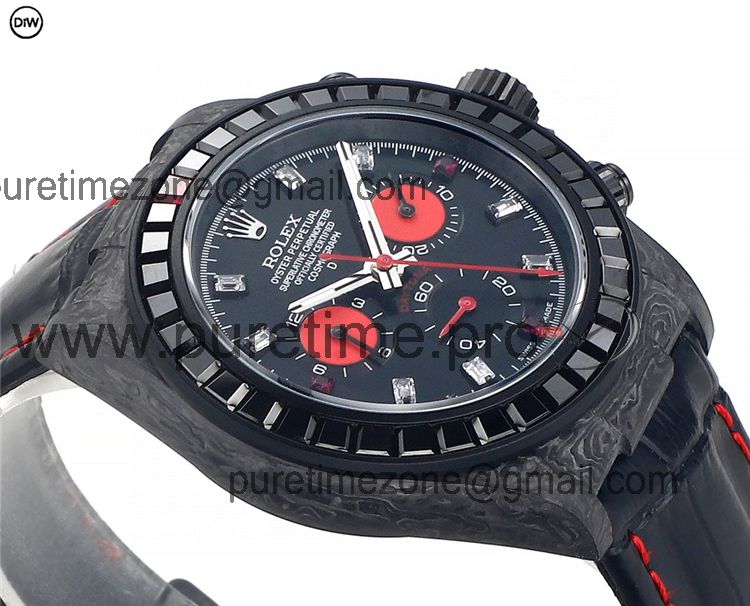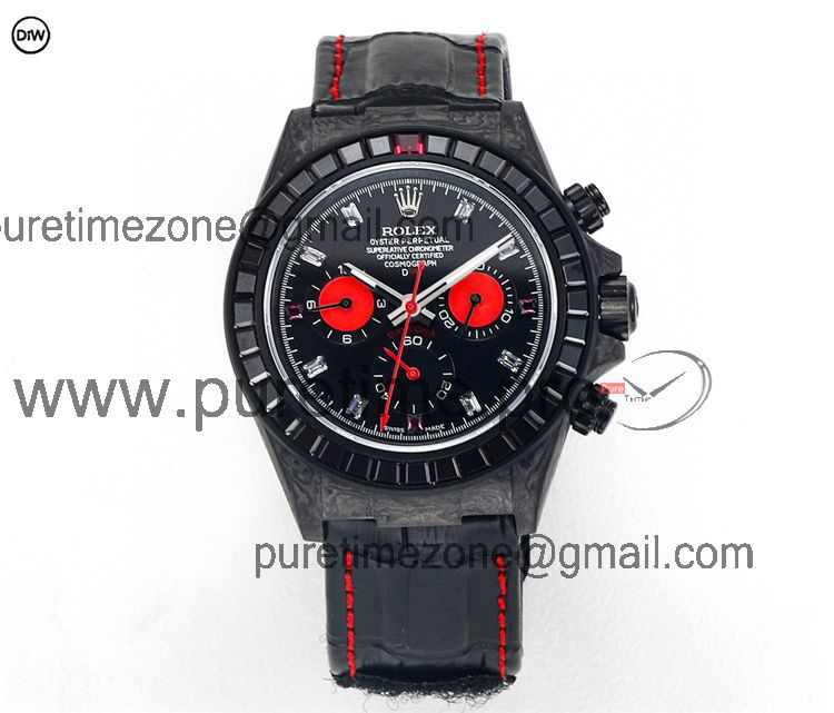 Home Rolex Daytona Cosmograph Daytona A7750 Automatic Chronograph Ladies Watch Best Editon DIWF Carbon Rainbow Diamond Black Dial Leahter