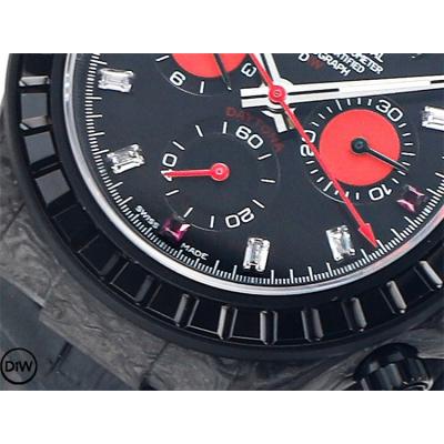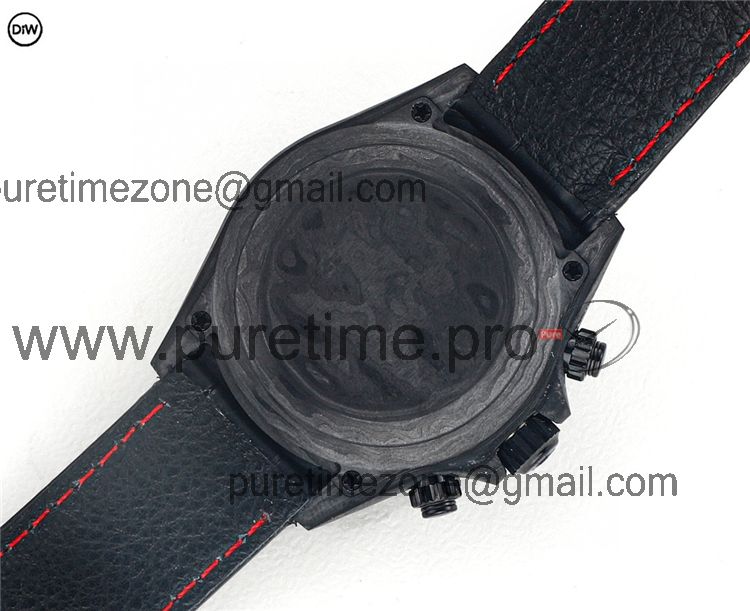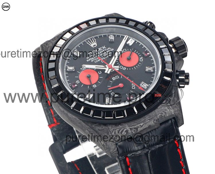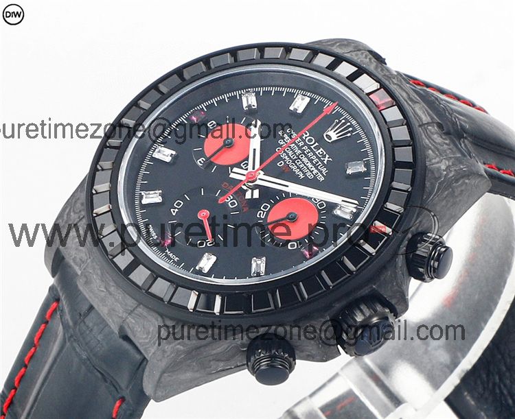 Daytona A7750 Automatic Chronograph Ladies Watch Best Editon DIWF Carbon Rainbow Diamond Black Dial Leahter