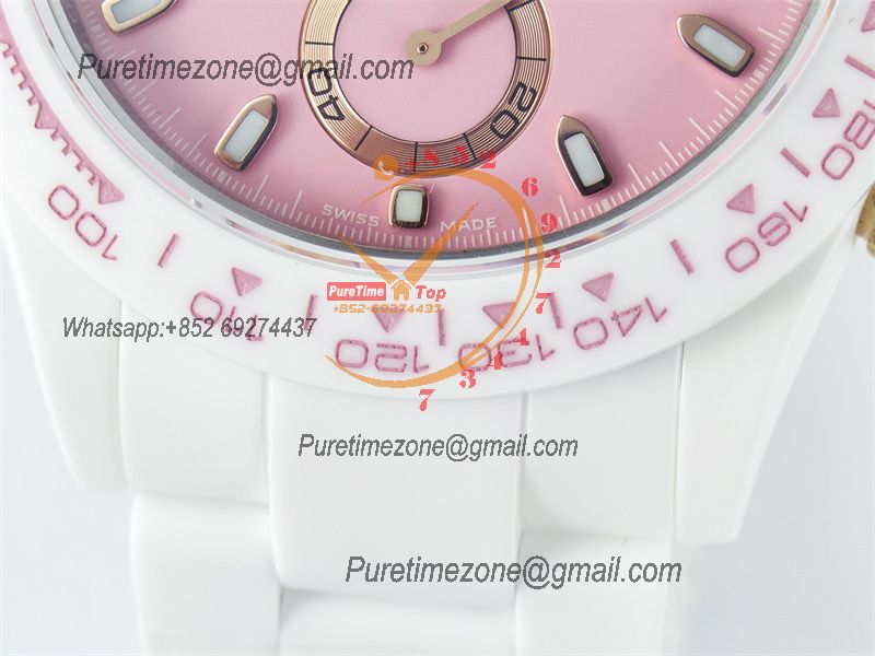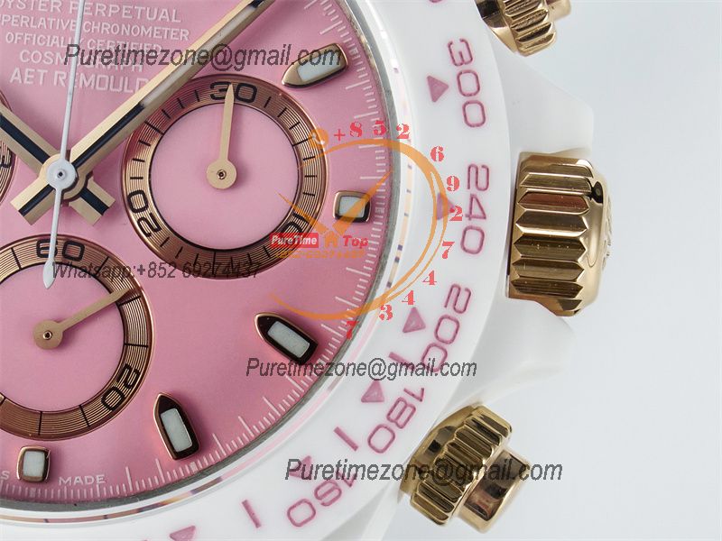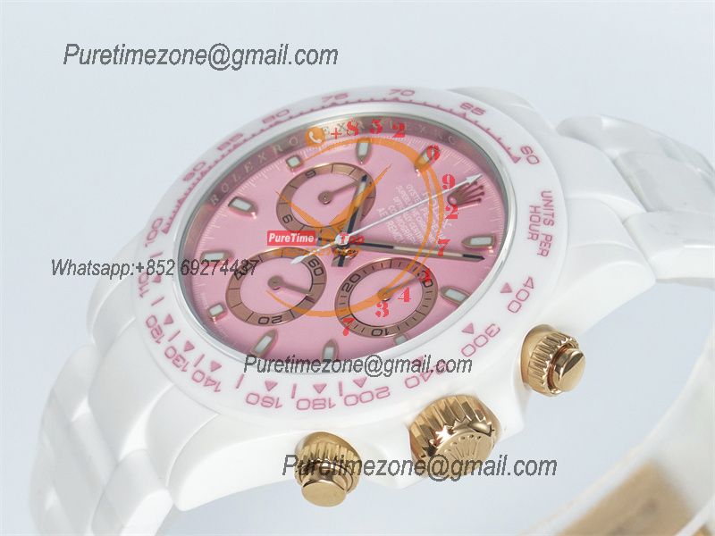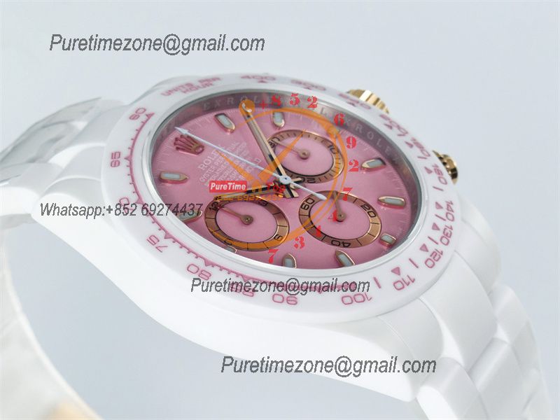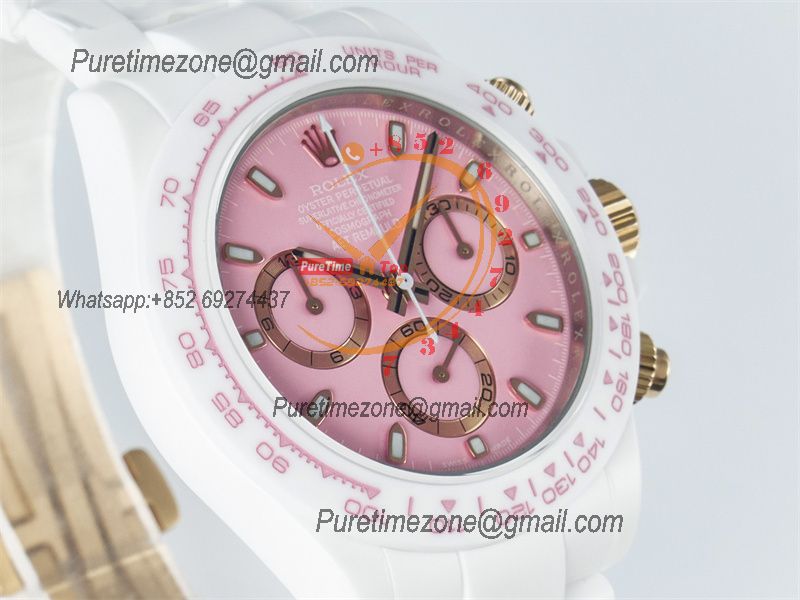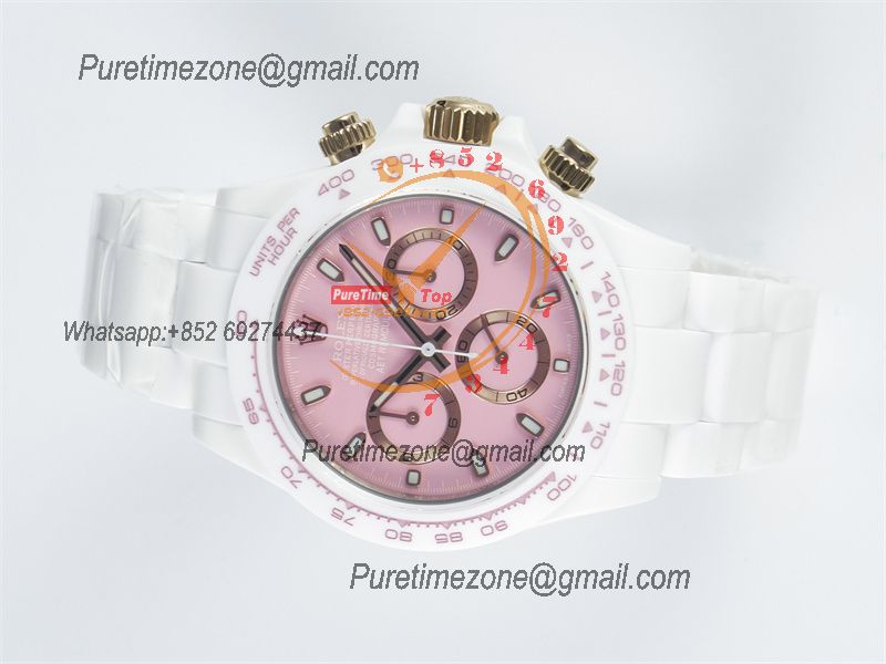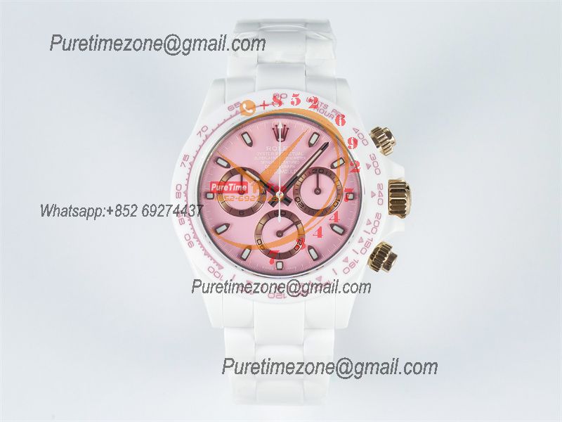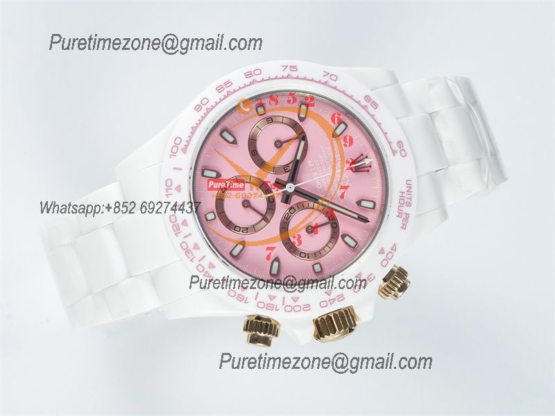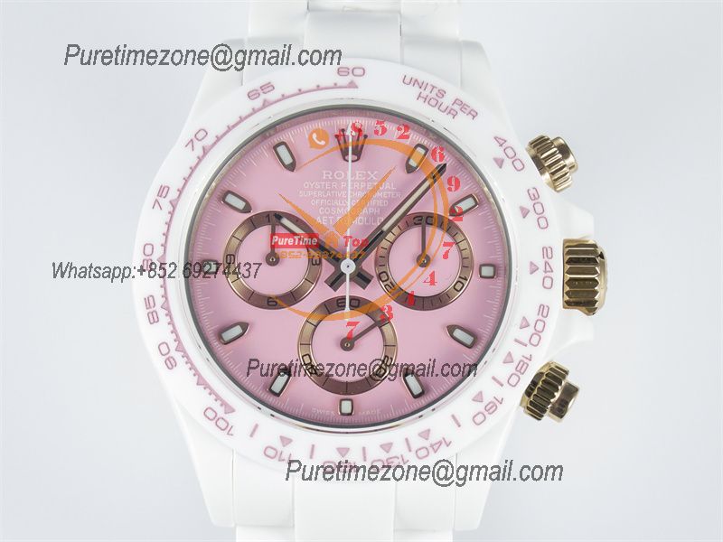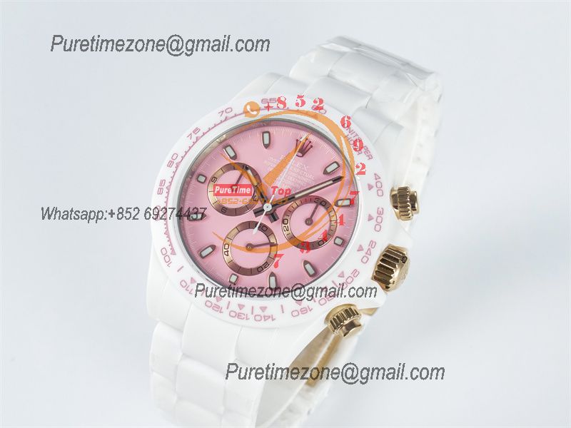 Daytona AET DD4801 Automatic Chronograph Mens Watch Best Edition N6F 1:1 White Solid Ceramic Case And Bracelet Pink Dial