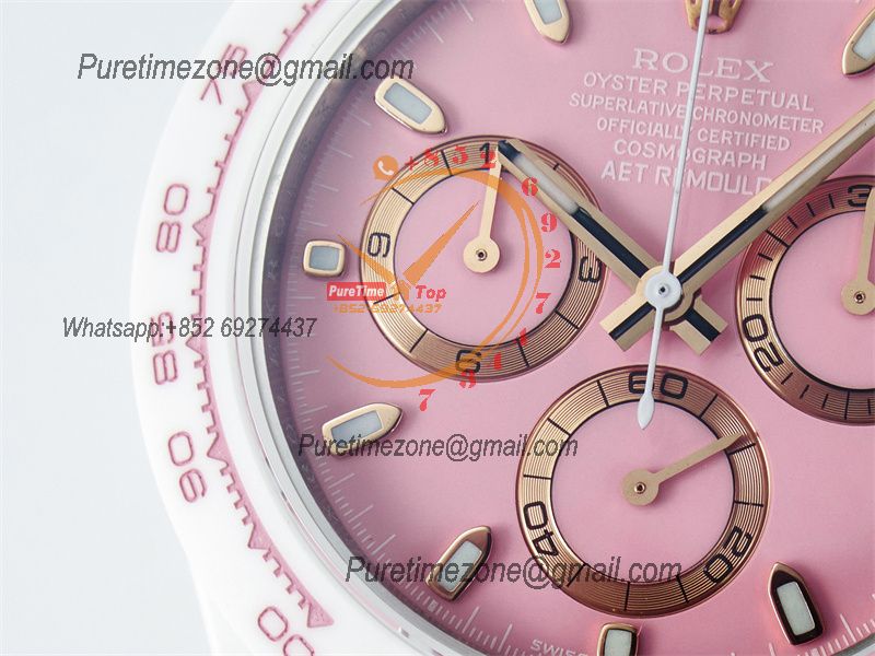Home Rolex Daytona Cosmograph Daytona AET DD4801 Automatic Chronograph Mens Watch Best Edition N6F 1:1 White Solid Ceramic Case And Bracelet Pink Dial
