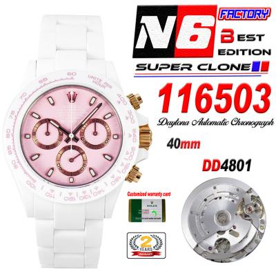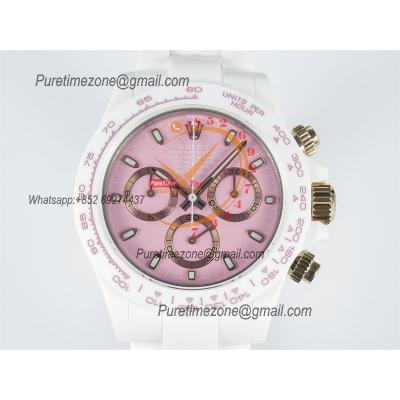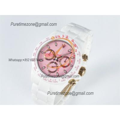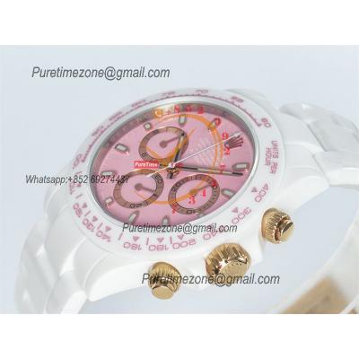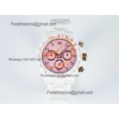 Daytona AET DD4801 Automatic Chronograph Mens Watch Best Edition N6F 1:1 White Solid Ceramic Case And Bracelet Pink Dial