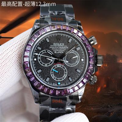 Home Rolex Daytona Cosmograph Daytona Blaken A7750 Automatic Chrono Mens Watch Best Edition BLAKENF Purple Diamond Bezel PVD Steel All Black Dial CHS