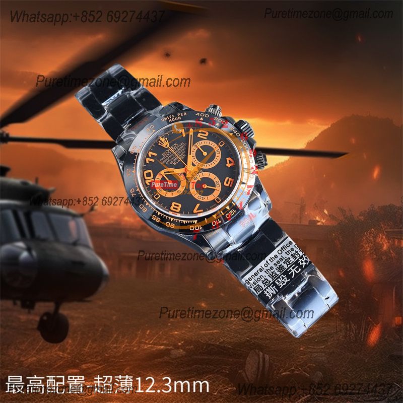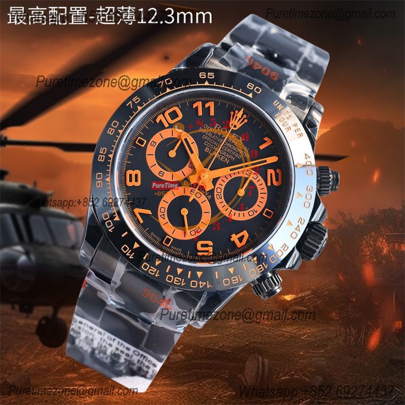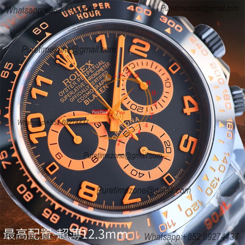 Home Rolex Daytona Cosmograph Daytona Blaken A7750 Automatic Chronograph Mens Watch Best Edition BLAKENF PVD Steel All Black Orange Dial CHS