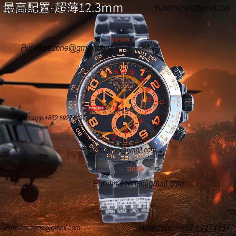 Daytona Blaken A7750 Automatic Chronograph Mens Watch Best Edition BLAKENF PVD Steel All Black Orange Dial CHS