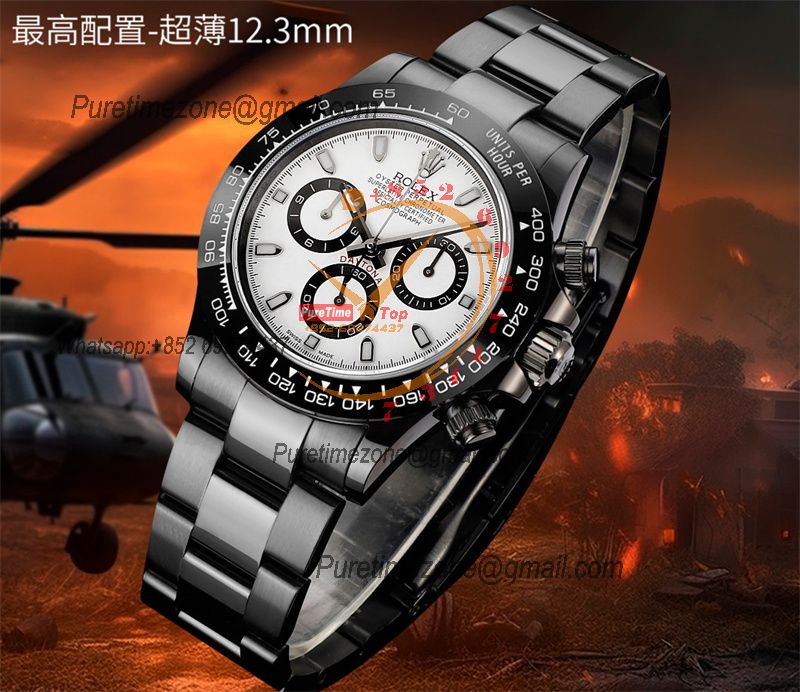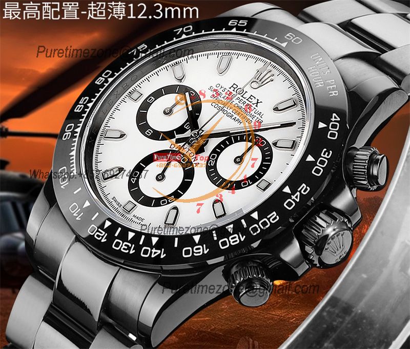 Home Rolex Daytona Cosmograph Daytona Blaken Panda A7750 Automatic Chronograph Mens Watch Best Edition BLAKENF PVD Steel All Black White Dial CHS