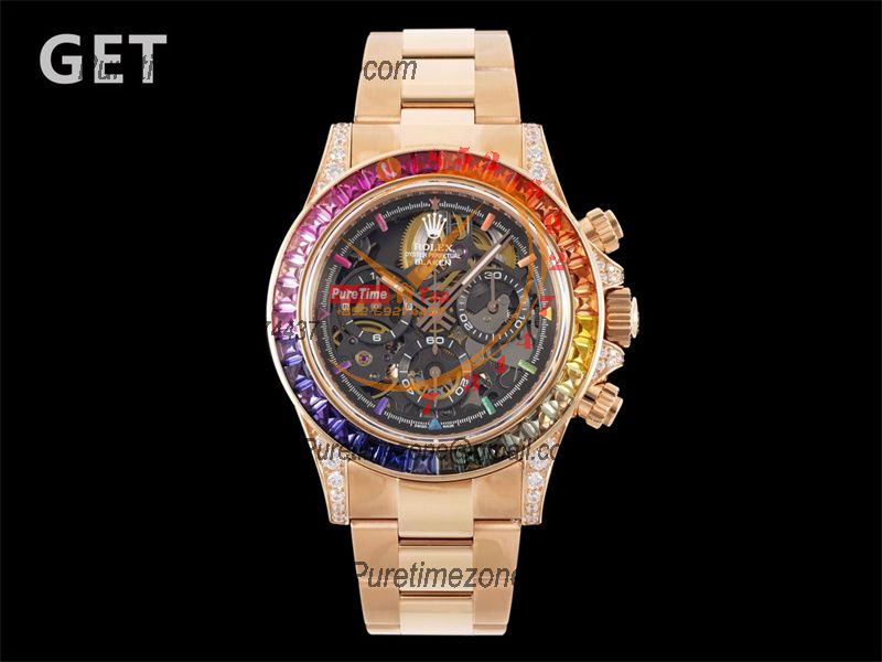 Home Rolex Daytona Cosmograph Daytona Blaken SA4130 Automatic Chrono Mens Watch Best Edition GETF RG Rainbow Diamond Skeleton Dial 904L SS Bracelet