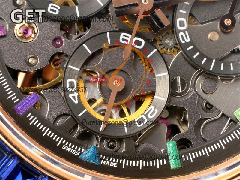 Daytona Blaken SA4130 Automatic Chronograph Mens Watch Best Edition GETF RG Rainbow Diamond Skeleton Dial Black Rubber $1,260.00 $1,050.00