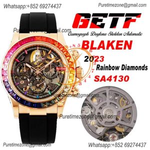 Daytona Blaken SA4130 Automatic Chronograph Mens Watch Best Edition GETF RG Rainbow Diamond Skeleton Dial Black Rubber $1,260.00 $1,050.00