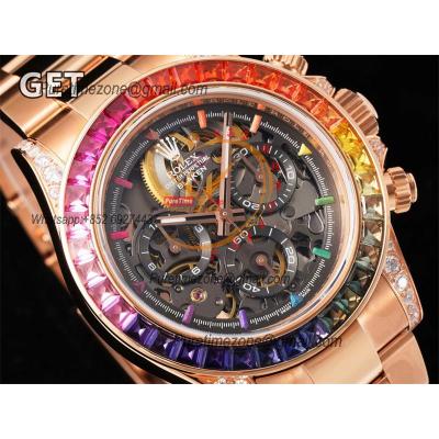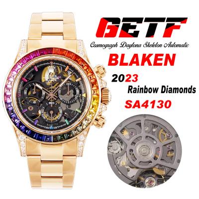 Daytona Blaken SA4130 Automatic Chrono Mens Watch Best Edition GETF RG Rainbow Diamond Skeleton Dial 904L SS Bracelet