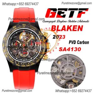 Daytona Blaken SA4130 Automatic Chronograph Mens Watch Best Edition GETF Carbon Bezel Skeleton Gold Dial Red Rubber $1,260.00 $1,050.00