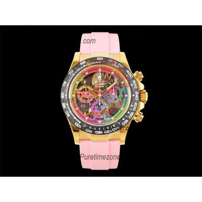 Home Rolex Daytona Cosmograph Daytona Blaken SA4130 Automatic Chronograph Mens Watch Best Edition GETF Carbon Bezel Skeleton Gold Dial Pink Rubber