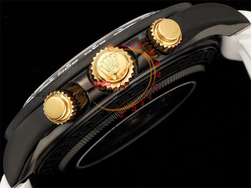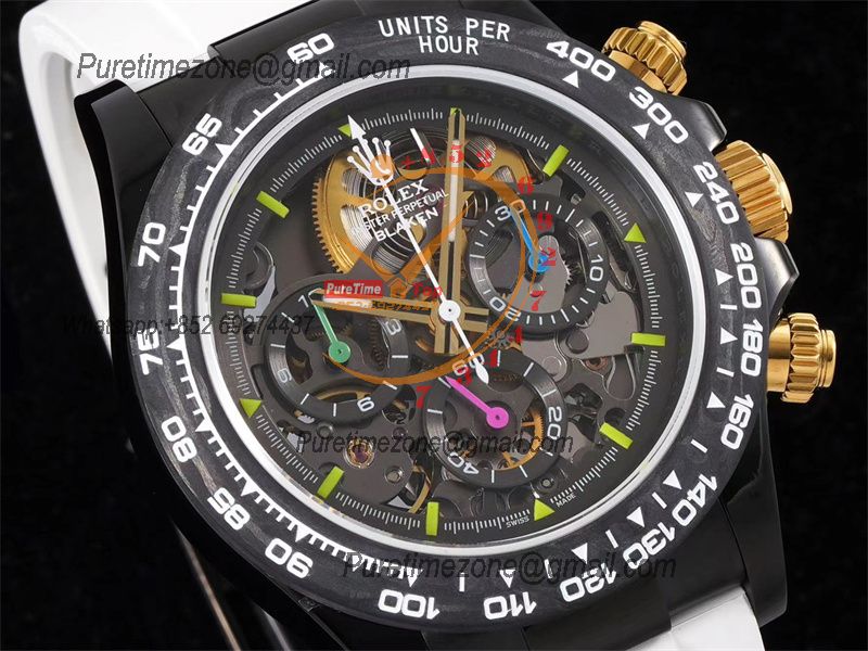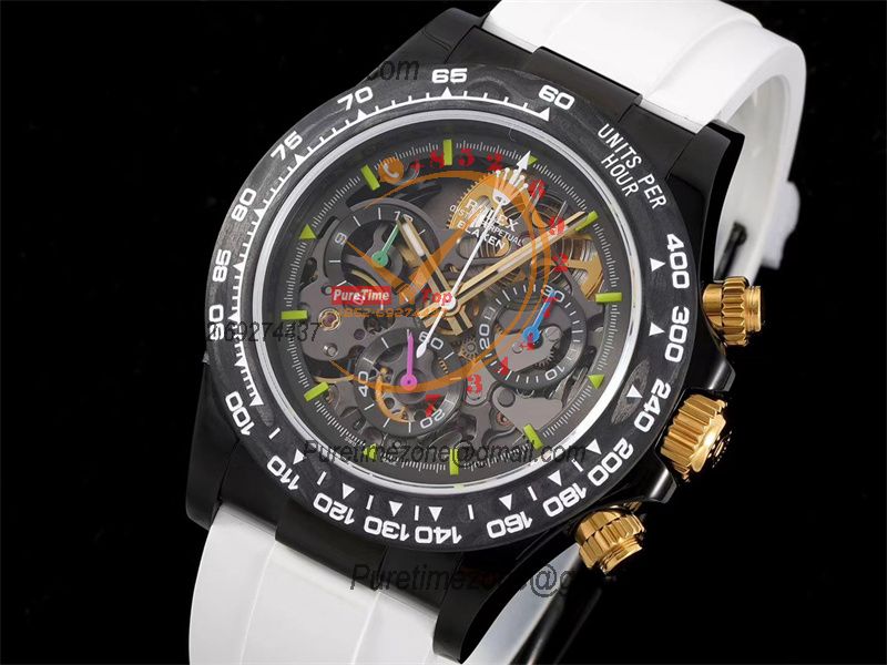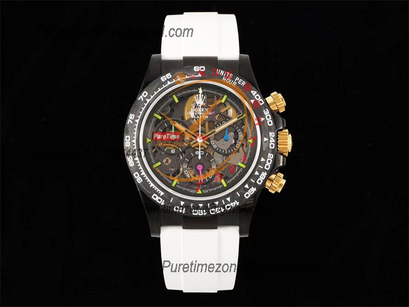 Home Rolex Daytona Cosmograph Daytona Blaken SA4130 Automatic Chronograph Mens Watch Best Edition GETF Carbon Bezel Skeleton Gold Dial White Rubber