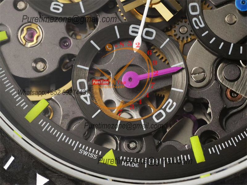 WWF Daytona Cronus Art X ETA A7750 Automatic Chronograph Mens WatchForged Carbon Skull Dial Yellow Nylon