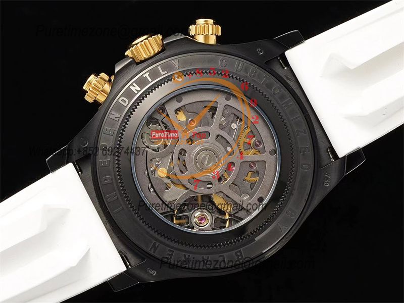 Daytona Blaken SA4130 Automatic Chronograph Mens Watch Best Edition GETF Carbon Bezel Skeleton Gold Dial White Rubber