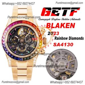 Daytona Blaken SA4130 Automatic Chrono Mens Watch Best Edition GETF RG Rainbow Diamond Skeleton Dial 904L SS Bracelet $1,260.00 $1,050.00
