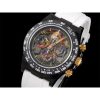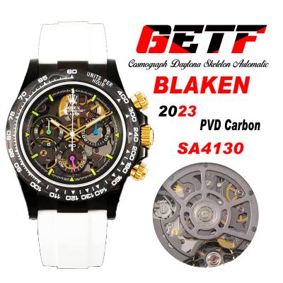 Daytona Blaken SA4130 Automatic Chronograph Mens Watch Best Edition GETF Carbon Bezel Skeleton Gold Dial White Rubber