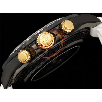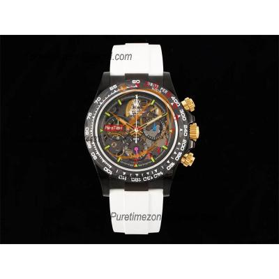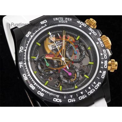 Home Rolex Daytona Cosmograph Daytona Blaken SA4130 Automatic Chronograph Mens Watch Best Edition GETF Carbon Bezel Skeleton Gold Dial White Rubber