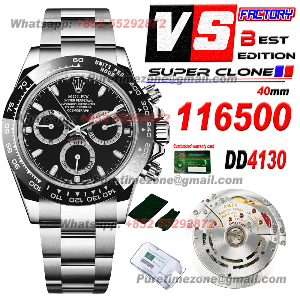 Daytona Chronograph 116500 Automatic Mens Watch Super Clone VSF 40 Black Dial 904L SS Bracelet DD4130 CHS