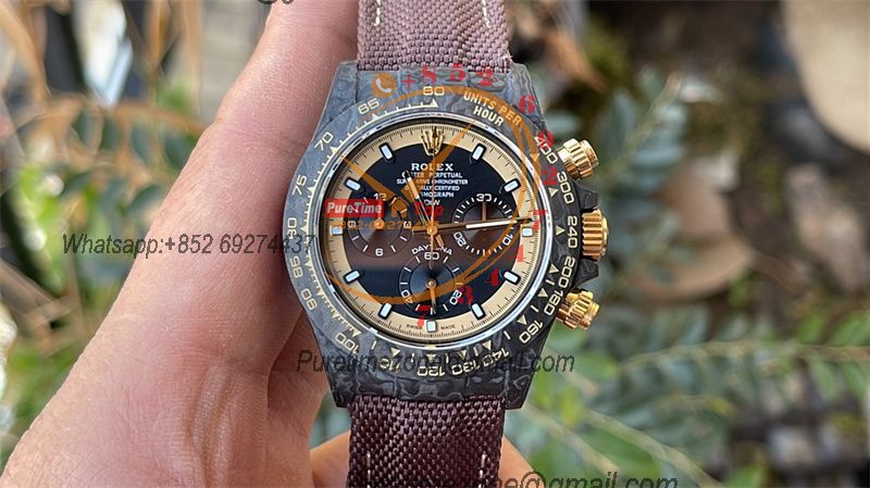 Daytona DIW Black Carbon Cream Invert Gold SA4130 Autoamtic Chronograph Mens Watch Best Edition N6F V2 Black Dial Nylon $1,500.00 $1,250.00