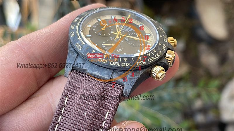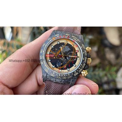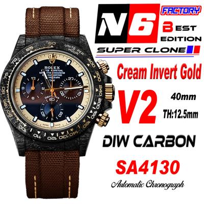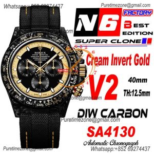 Daytona DIW Black Carbon Cream Invert Gold SA4130 Autoamtic Chronograph Mens Watch Best Edition N6F V2 Black Dial Nylon